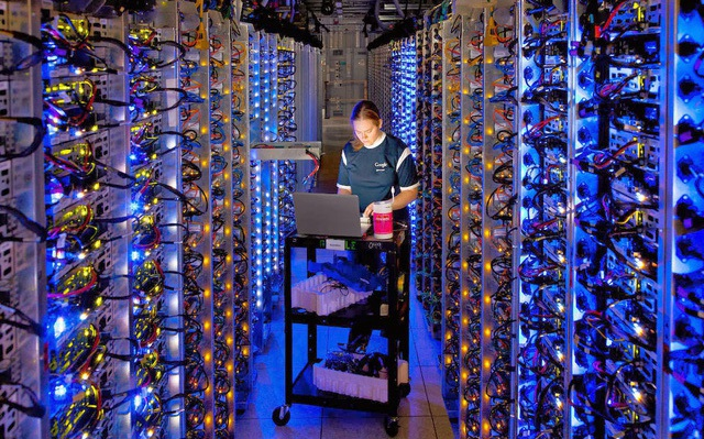 Nhân viên kiểm tra hệ thống máy đào của Bitminer ở Italy tháng 4/2018. Ảnh: Reuters